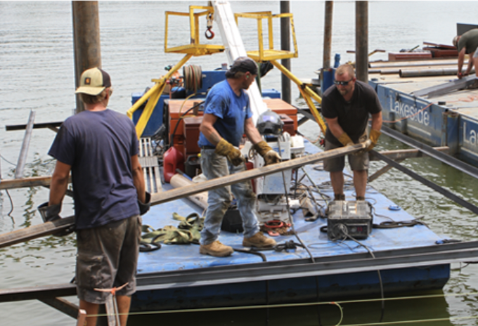 C&R Lakeside Landscape provides expert, portable dock repair service. Whether it’s as simple as replacing a few planks or spot welding a bracket, or a more comprehensive project such as rebuilding a failed section of an existing retaining wall, we’ll be there for you. We’ll float in, make the repairs, and float back out. We also provide emergency storm damage services.